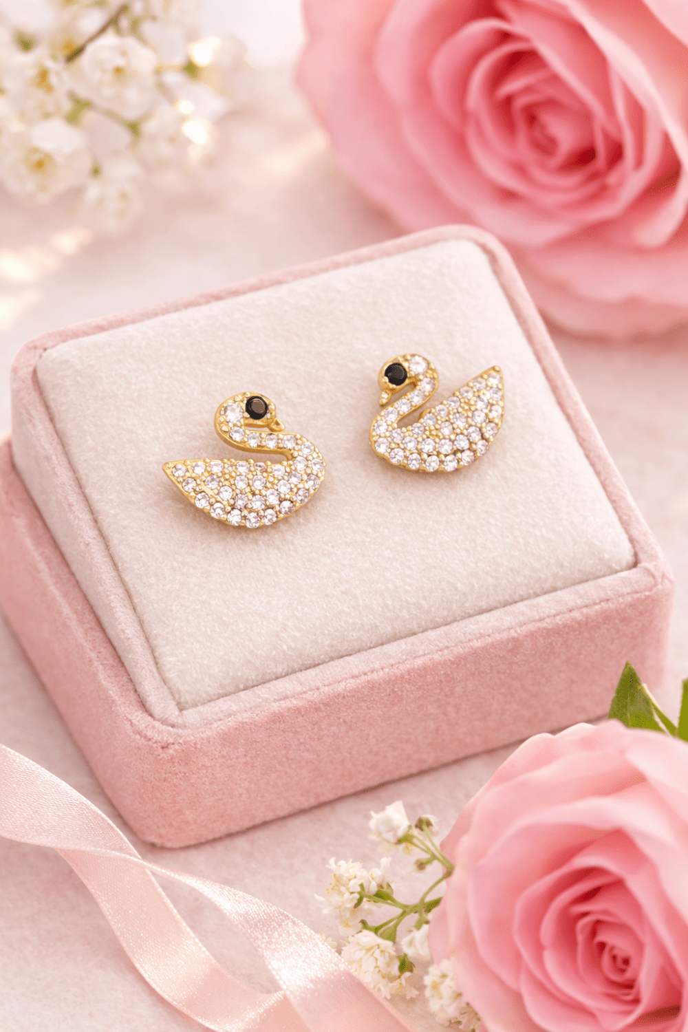 Kolczyki złote łabędzie z cyrkoniami ze stali szlachetnej