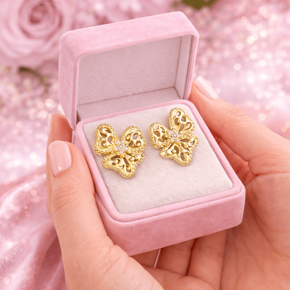 Kolczyki złote kwiaty z cyrkoniami stal szlachetna