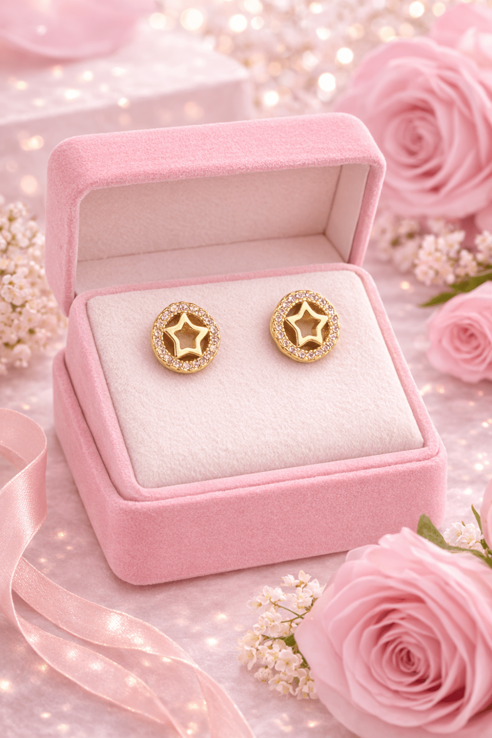 Kolczyki złote gwiazdki z cyrkoniami stal szlachetna