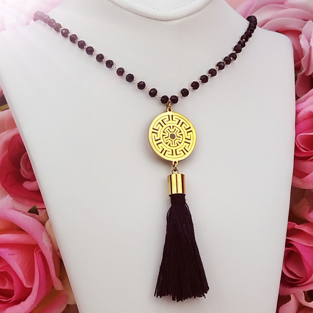 Naszyjnik celebrytka złota wzór grecki frędzle koraliki stal chirurgiczna 316L