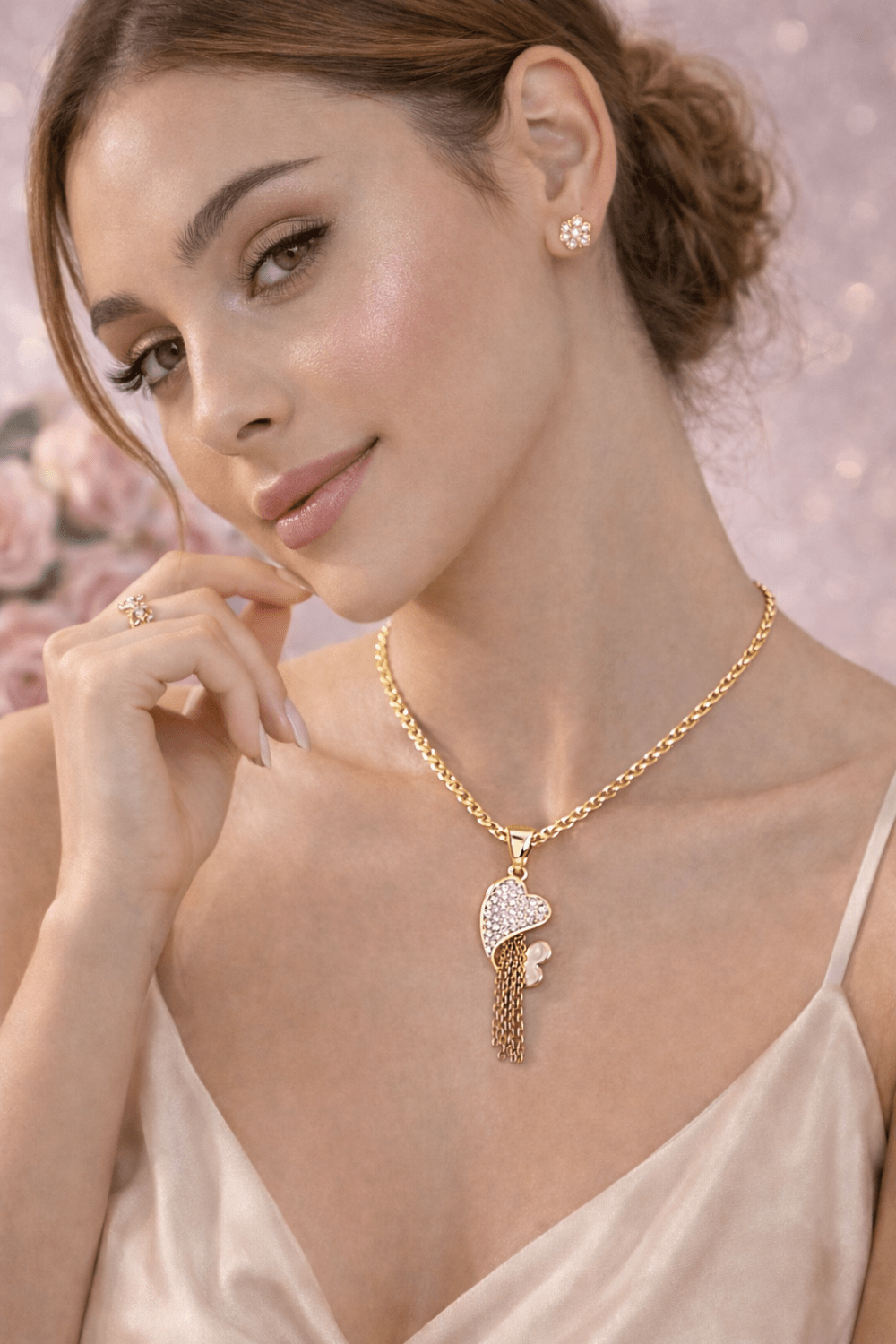 Komplet bizuterii pozłacanej łańcuszek i wisiorek stal szlachetna Na prezent