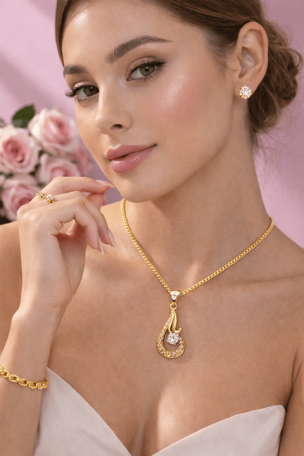 Komplet bizuterii pozłacanej łańcuszek i wisiorek stal szlachetna Na prezent