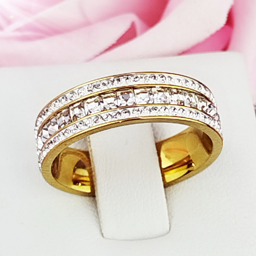 Pierścionek obrączka złota kryształki stal chirurgiczna 316L