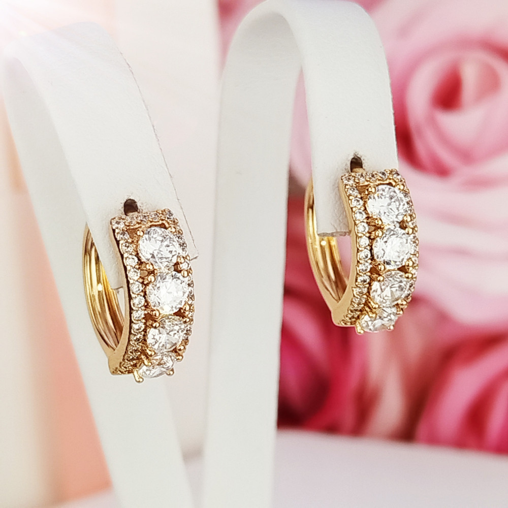 Kolczyki wiszące koła złote ozdobne cyrkonie stal chirurgiczna 316L