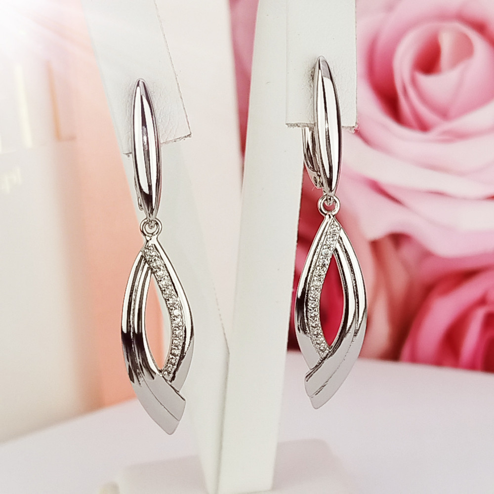 Kolczyki wiszące koła srebrne ozdobne cyrkonie grecki wzór stal chirurgiczna 316L