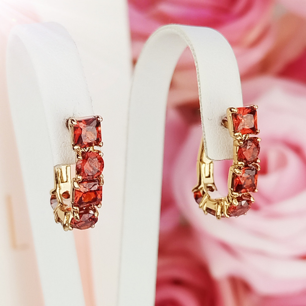 Kolczyki koła złote ozdobne cyrkonie Granat stal chirurgiczna 316L