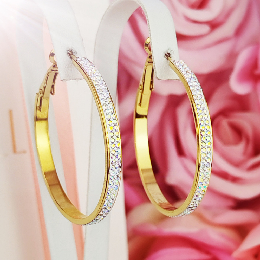 Kolczyki koła złote ozdobne cyrkonie stal chirurgiczna 316L