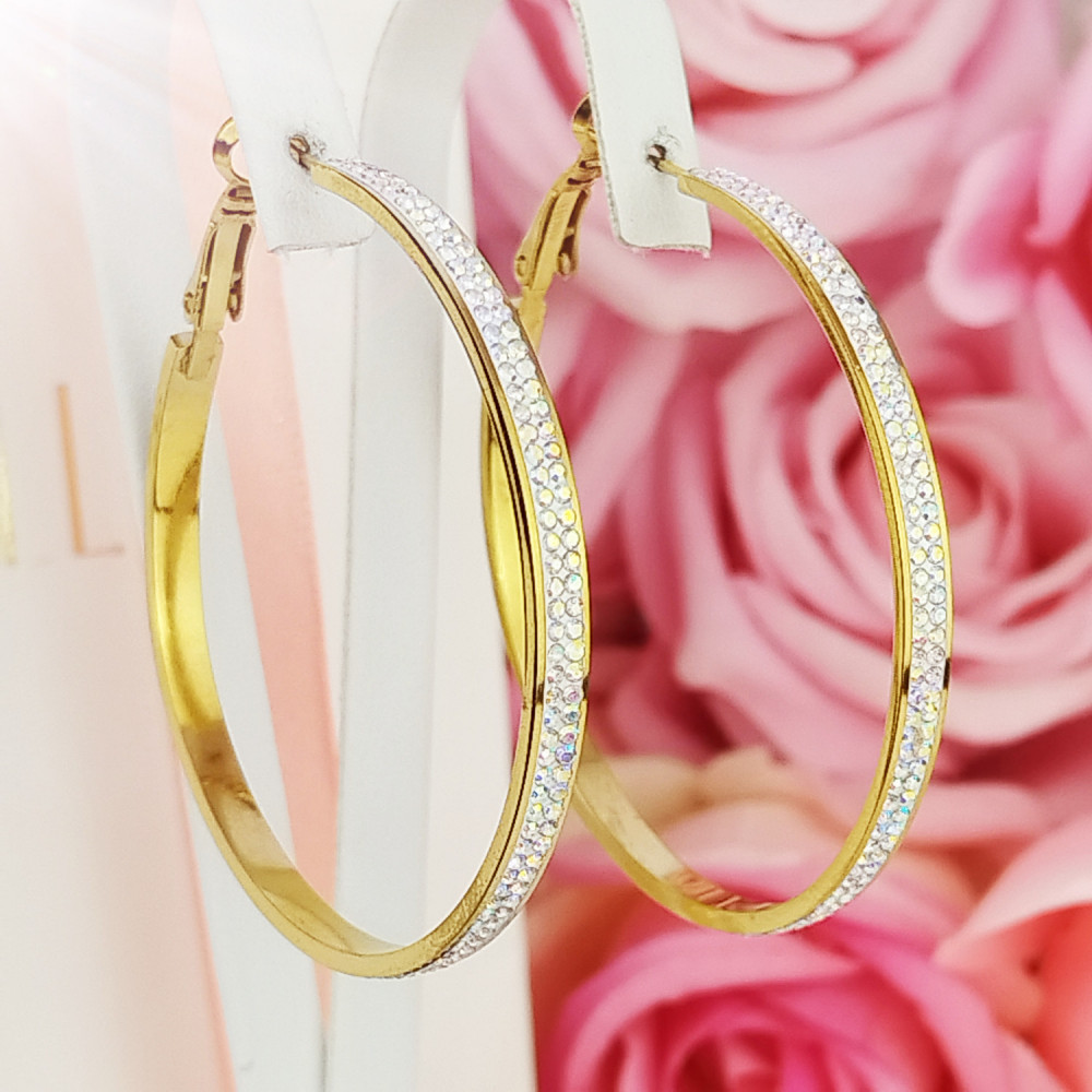 Kolczyki koła złote ozdobne cyrkonie stal chirurgiczna 316L
