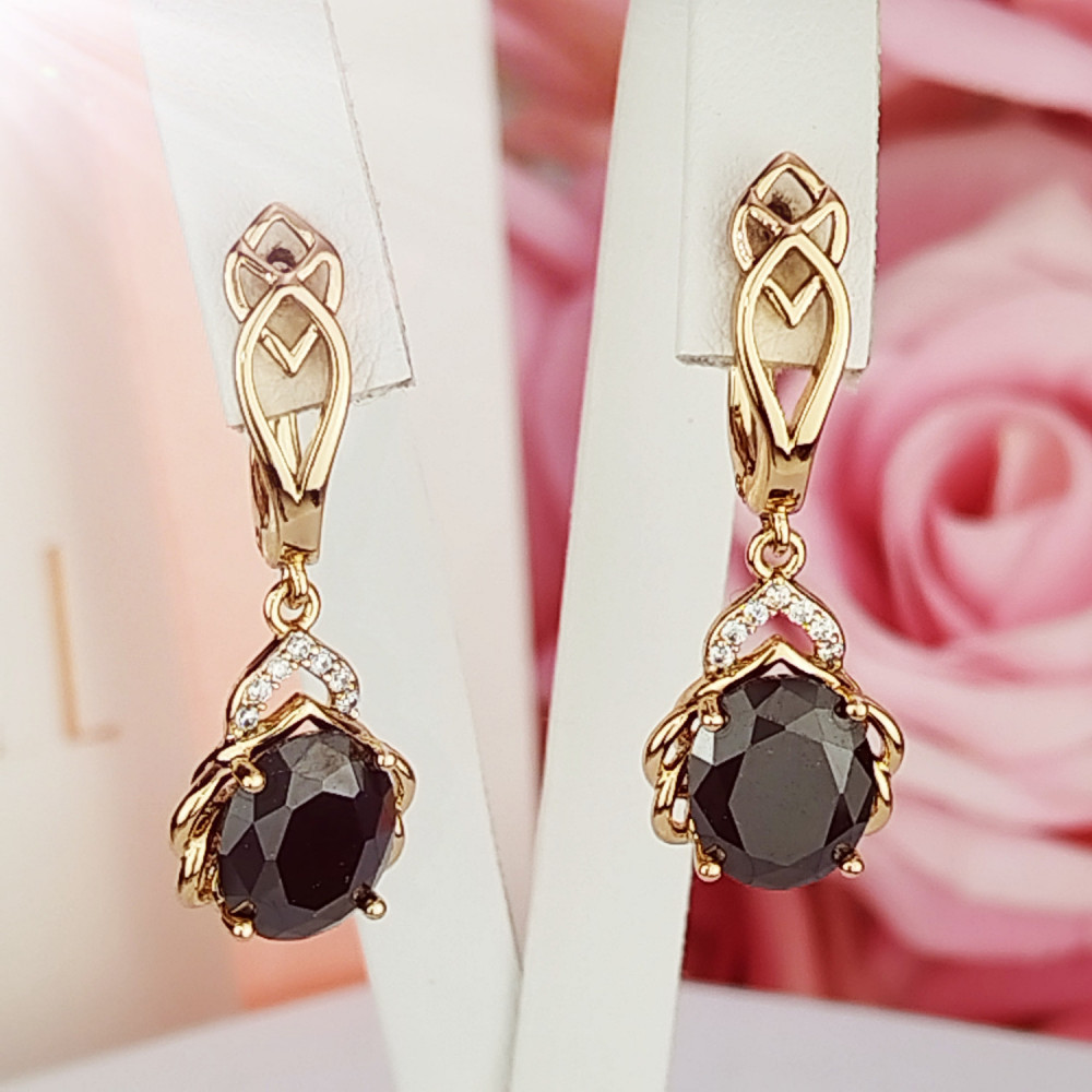 Kolczyki wiszące złote czarne kryształy stal chirurgiczna 316L