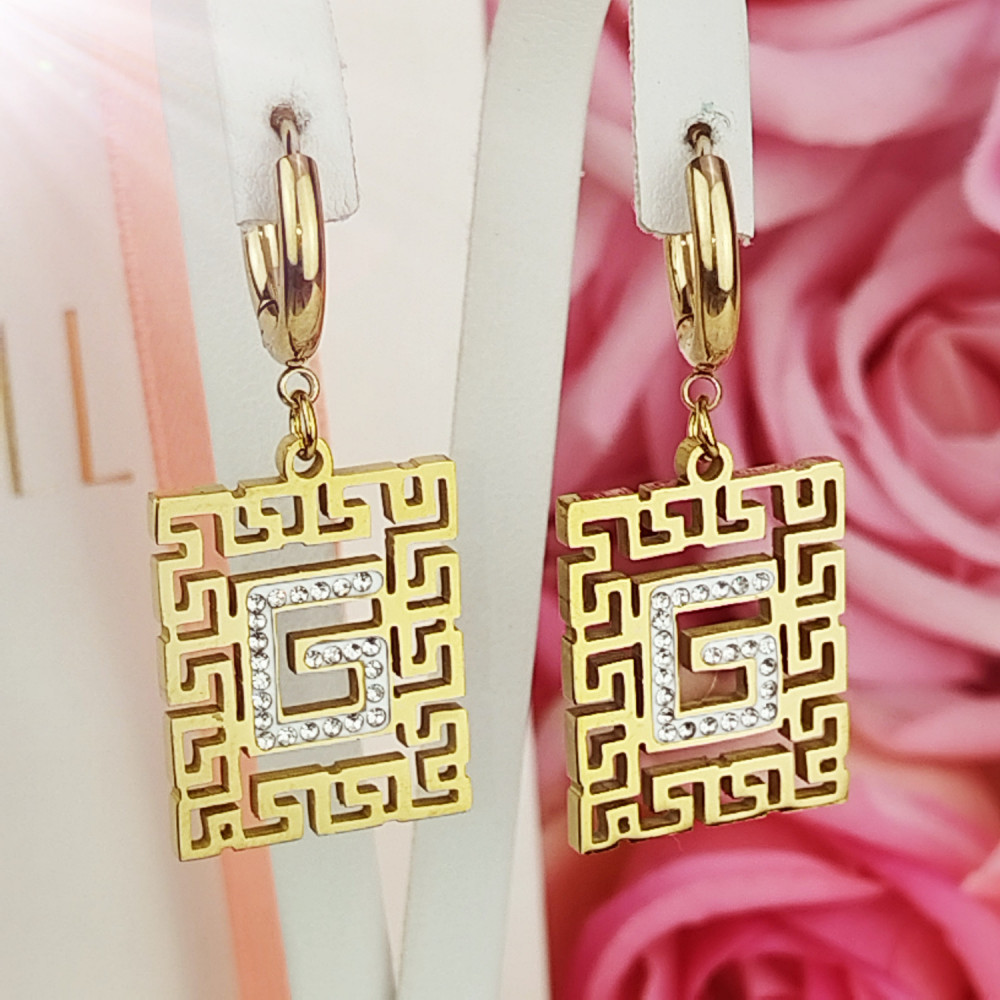 Kolczyki wiszące złote grecki wzór stal chirurgiczna 316L
