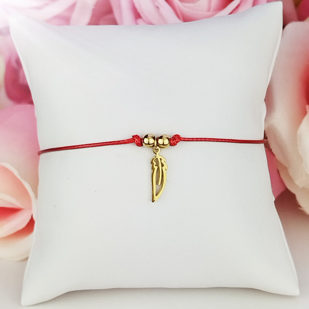 Bransoletka złota na sznurku listek stal chirurgiczna 316L