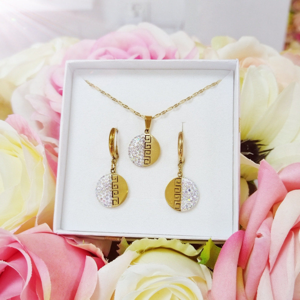 Komplet biżuterii kolczyki i łańcuszek stal chirurgiczna 316L