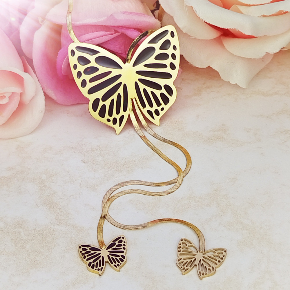 Naszyjnik krawatka długa motyl żmijka złota stal chirurgiczna 316L