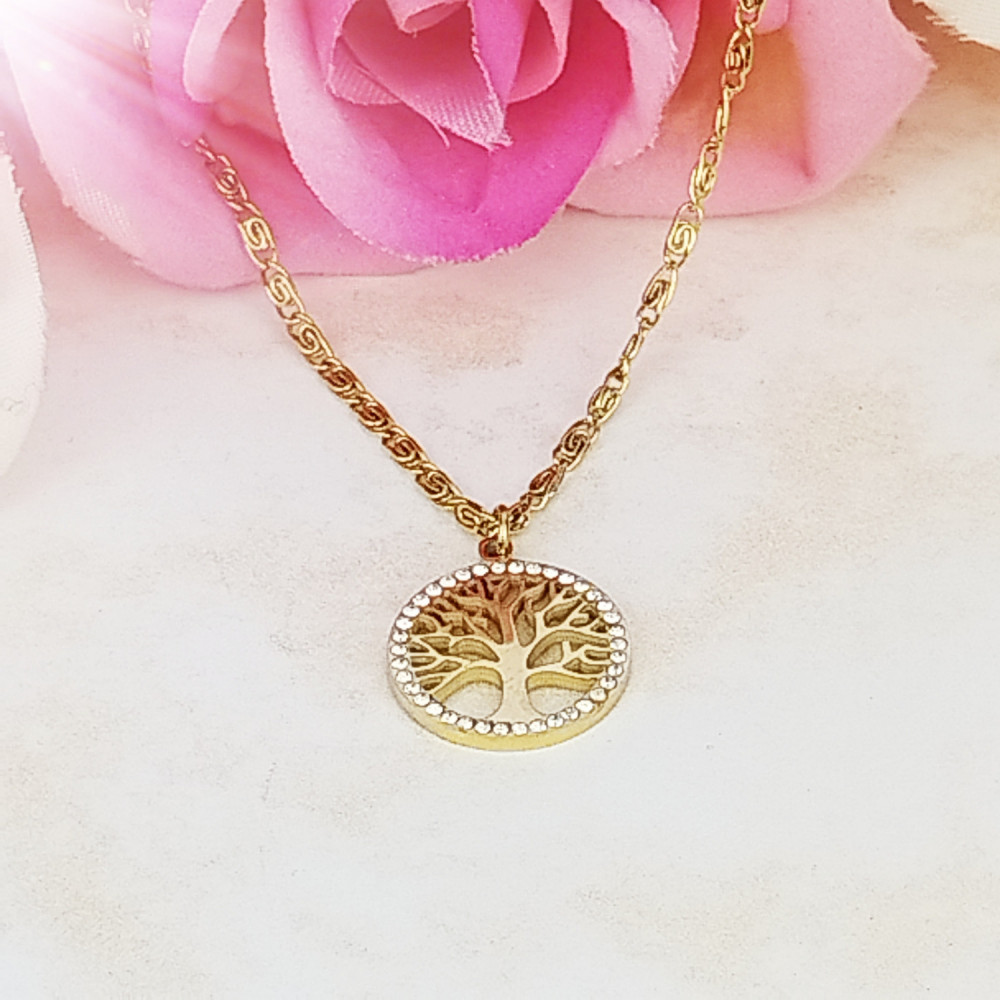 Naszyjnik celebrytka drzewko szczęścia złota stal chirurgiczna 316L