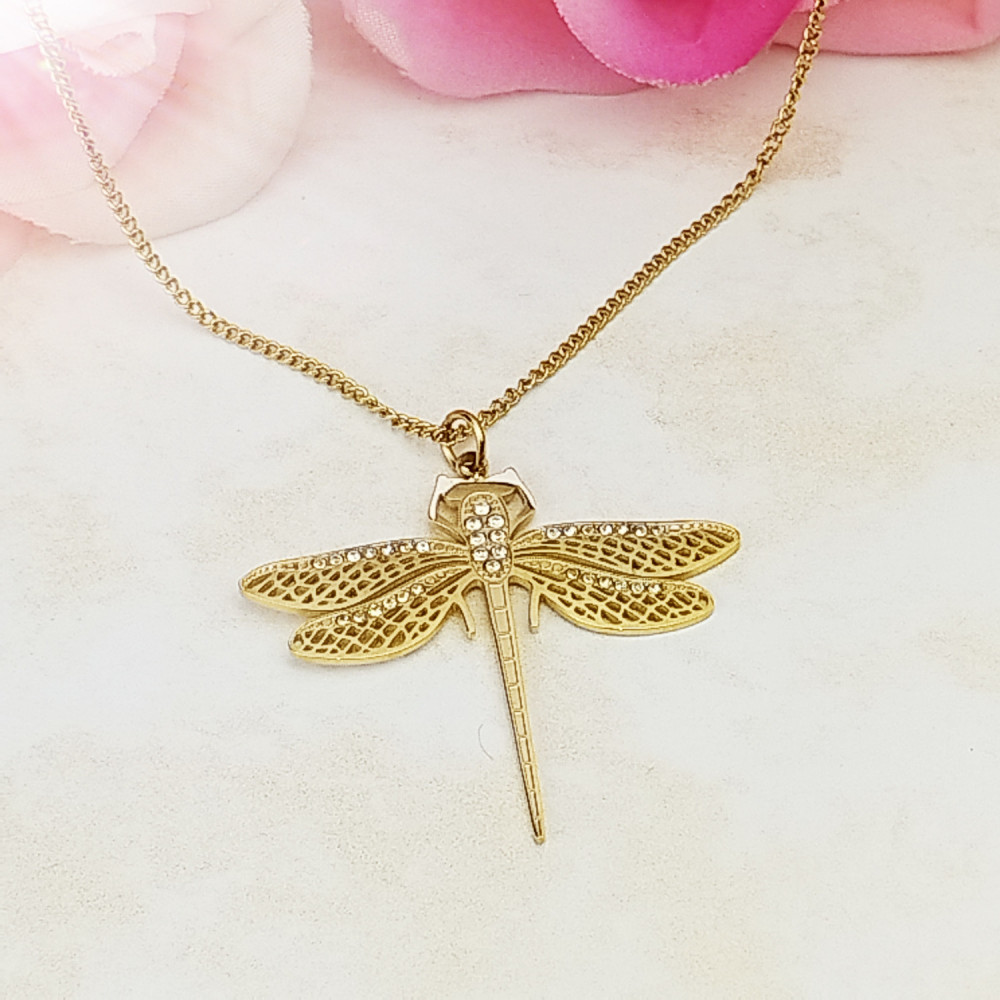 Naszyjnik ważka złota stal chirurgiczna 316L