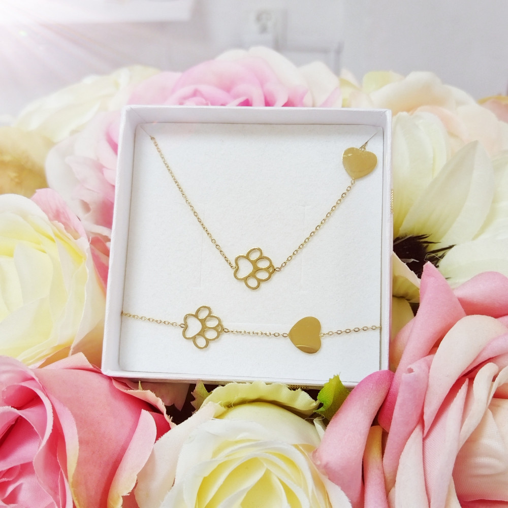 Komplet biżuterii złotej bransoletka i łańcuszek stal chirurgiczna 316L