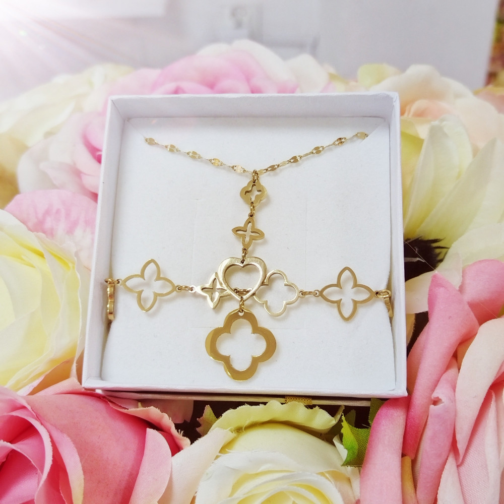 Komplet biżuterii złotej konczynka bransoletka i łańcuszek stal chirurgiczna 316L