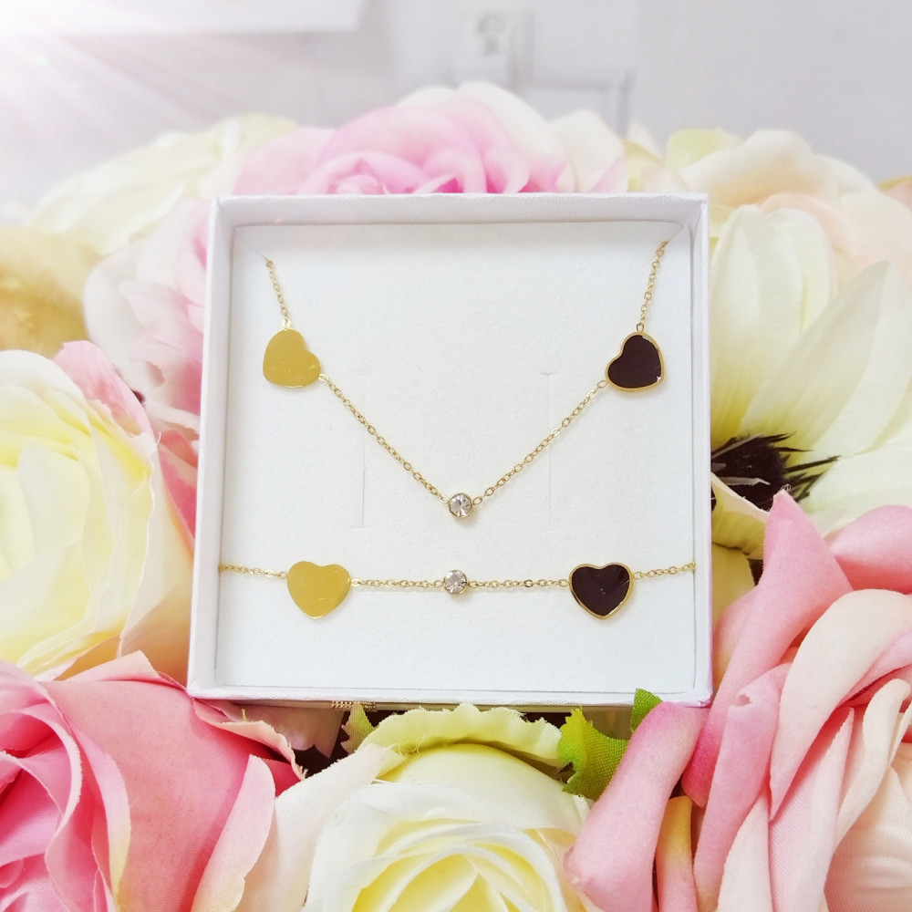 Komplet biżuterii złotej SERCE bransoletka i łańcuszek stal chirurgiczna 316L