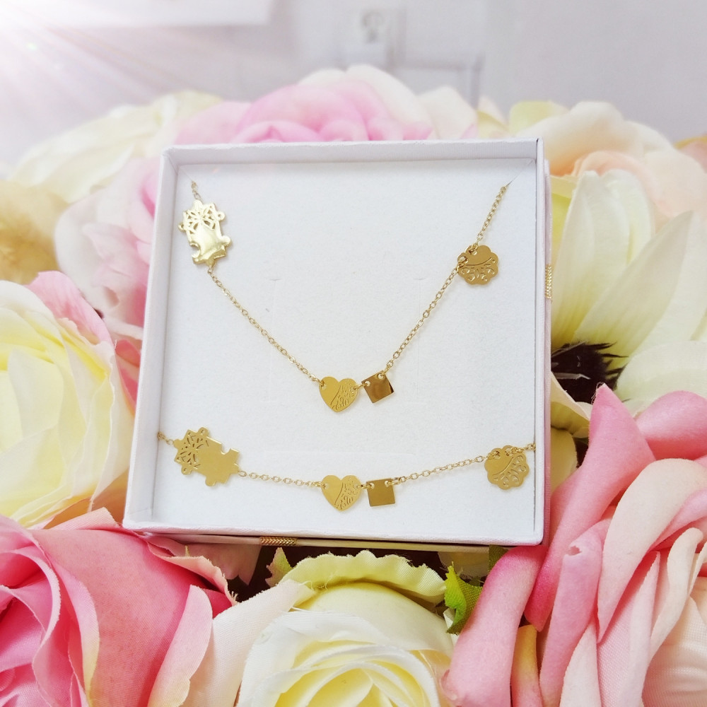 Komplet biżuterii złotej puzzle serce bransoletka i łańcuszek stal chirurgiczna 316L