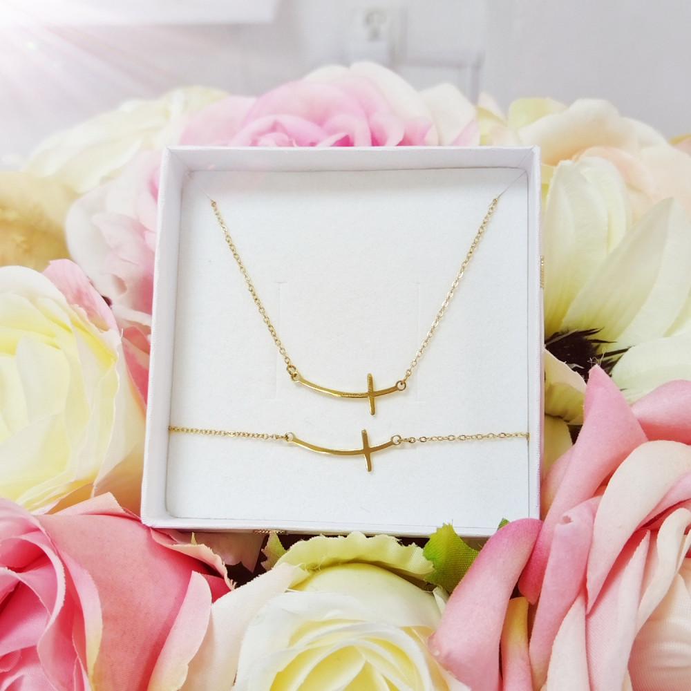 Komplet biżuterii złotej krzyżyk bransoletka i łańcuszek stal chirurgiczna 316L