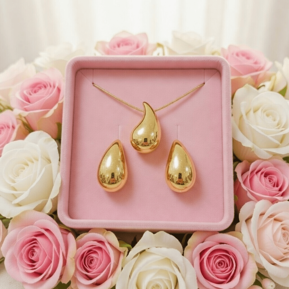 Komplet biżuterii złotej Łezki kolczyki i łańcuszek stal chirurgiczna 316L