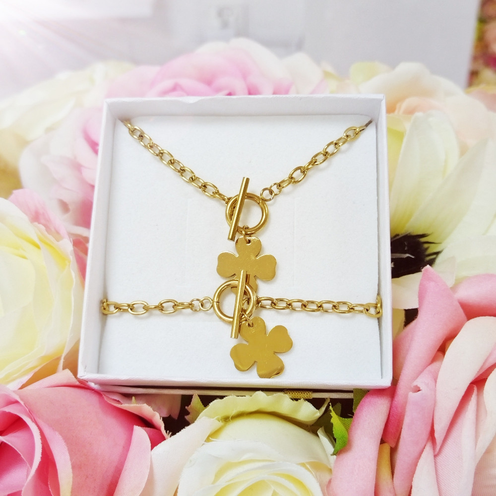 Komplet biżuterii złotej koniczynka bransoletka i łańcuszek stal chirurgiczna 316L