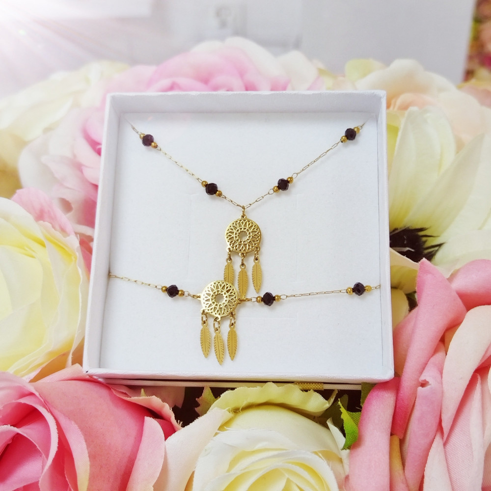 Komplet biżuterii złotej łapacz snów bransoletka i łańcuszek stal chirurgiczna 316L