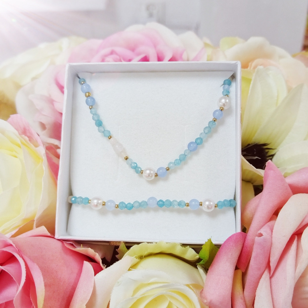 Komplet biżuterii złotej BŁĘKIT bransoletka i łańcuszek stal chirurgiczna 316L
