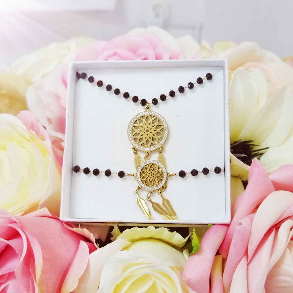 Komplet biżuterii złotej łapacz snów bransoletka i łańcuszek stal chirurgiczna 316L
