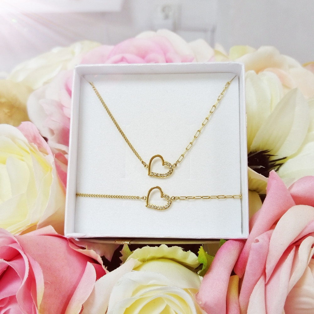 Komplet biżuterii złotej SERCE bransoletka i łańcuszek stal chirurgiczna 316L