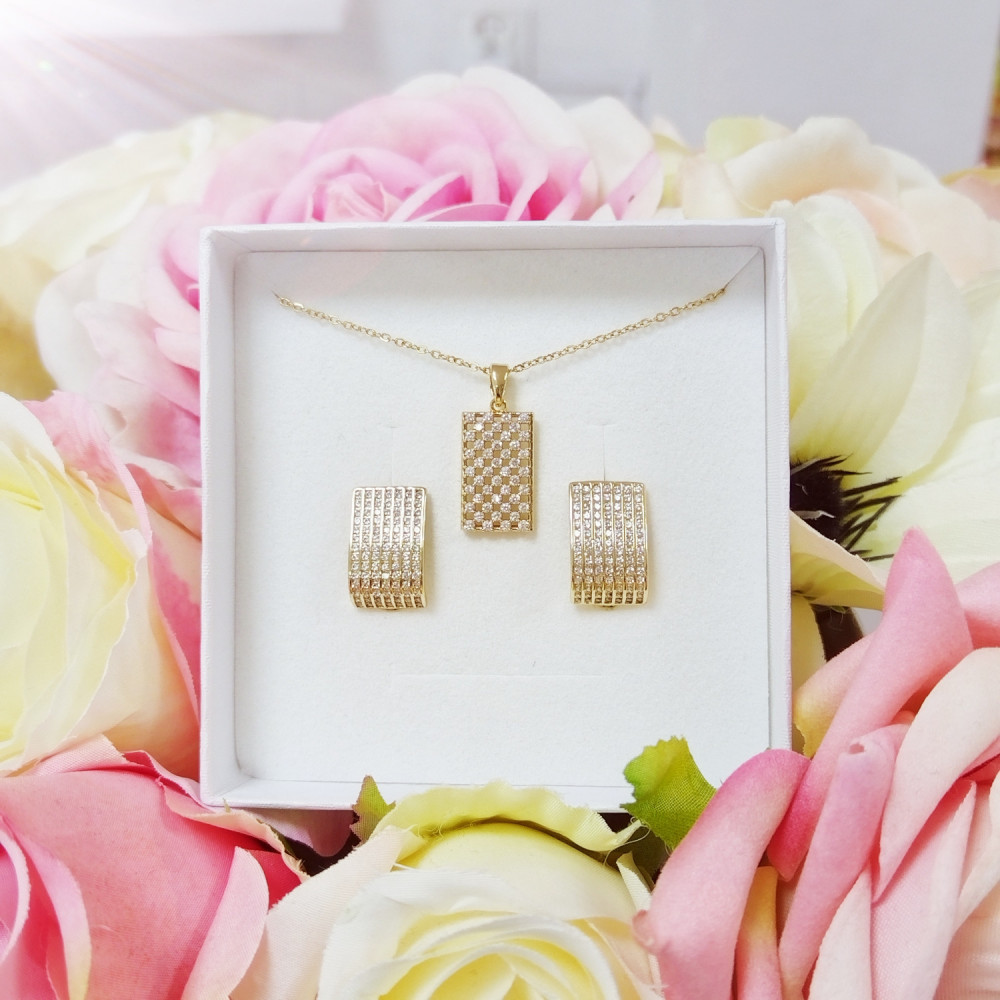 Komplet biżuterii złotej kolczyki i łańcuszek stal chirurgiczna 316L