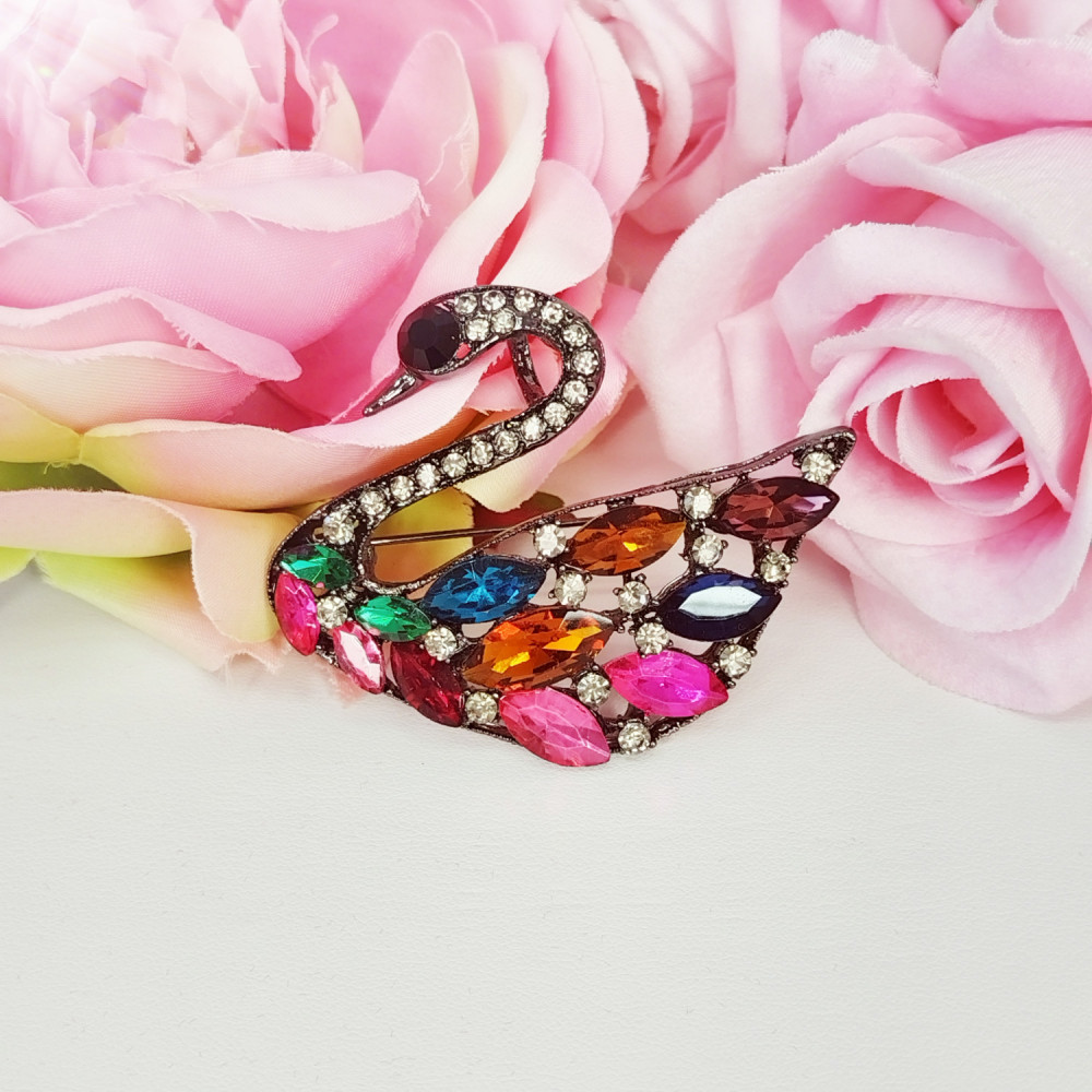 Broszka srebrna łabędź cyrkonie stal chirurgiczna