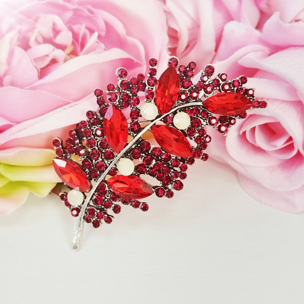 Broszka srebrna liść cyrkonie stal chirurgiczna