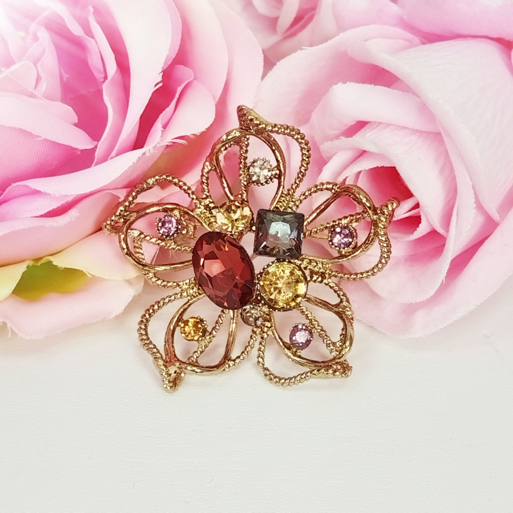 Broszka ozdobna kwiat cyrkonie stal chirurgiczna