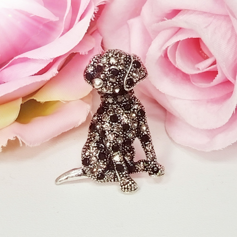 Broszka ozdobna pies cyrkonie stal chirurgiczna