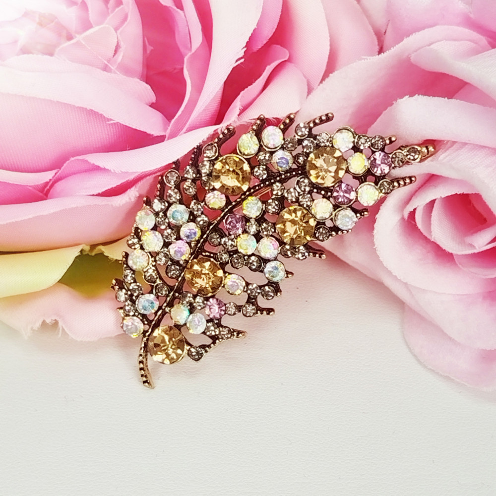 Broszka ozdobna liść cyrkonie stal chirurgiczna