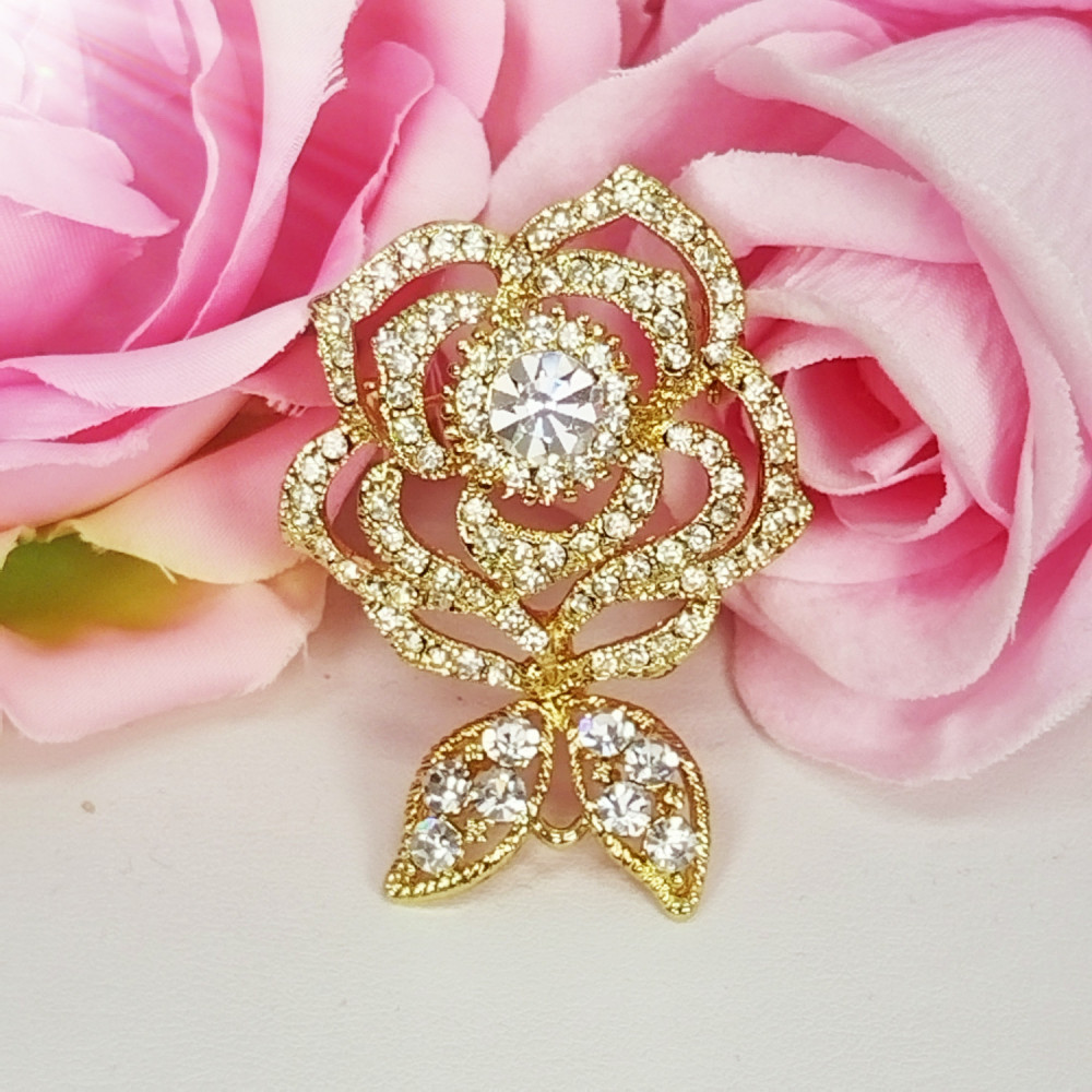Broszka ozdobna kwiat róża cyrkonie stal chirurgiczna