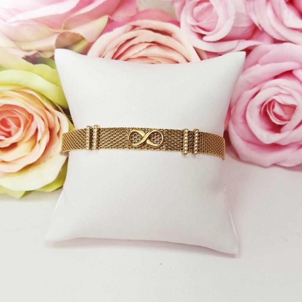 Bransoletka złota nieskończoność z cyrkoniami elegancka stal chirurgiczna 316L
