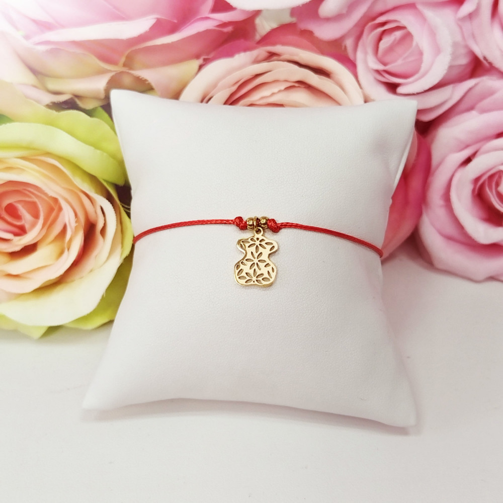 Bransoletka na sznurku czerwona miś stal chirurgiczna 316L