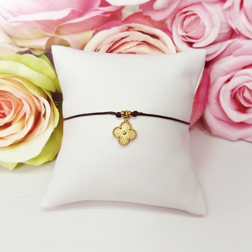 Bransoletka na sznurku czarna koniczynka stal chirurgiczna 316L