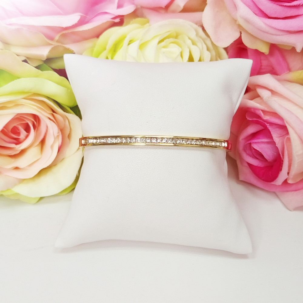 Bransoletka złota z cyrkoniami sztywna elegancka stal chirurgiczna 316L