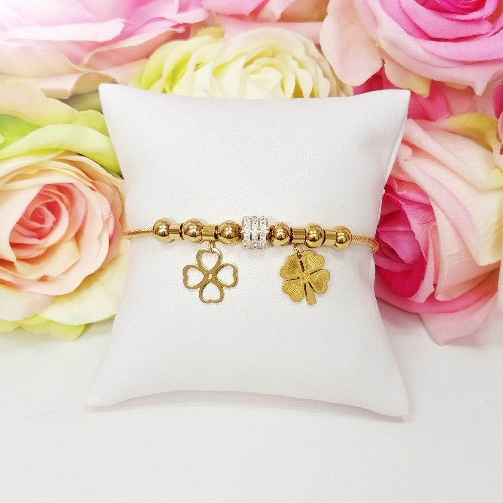 Bransoletka złota z cyrkoniami pandorka koniczynka elegancka stal chirurgiczna 316L