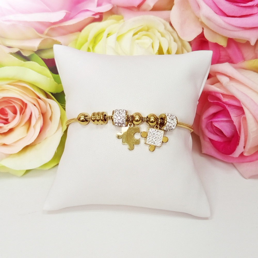 Bransoletka złota z cyrkoniami pandorka puzzle elegancka stal chirurgiczna 316L