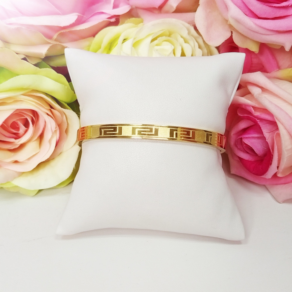 Bransoletka złota sztywna grecki wzór elegancka stal chirurgiczna 316L