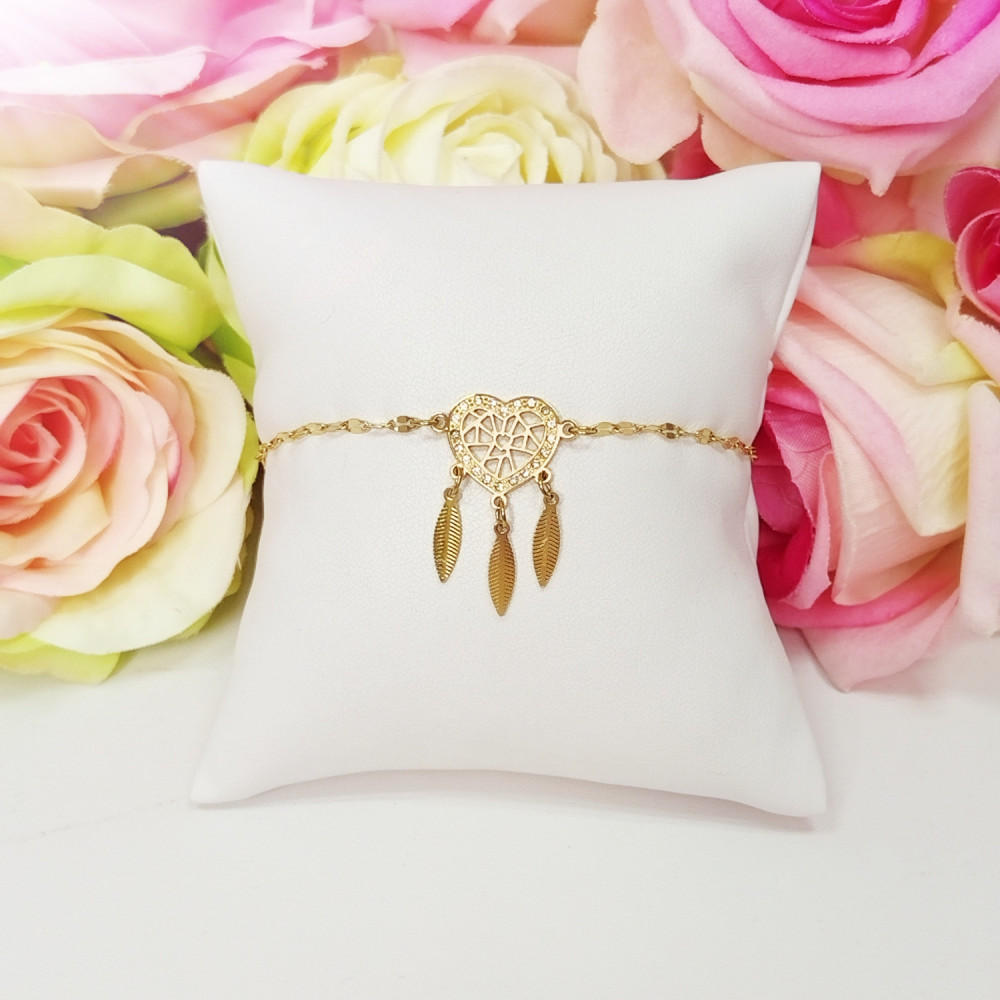 Bransoletka złota łapacz snów serce stal chirurgiczna 316L