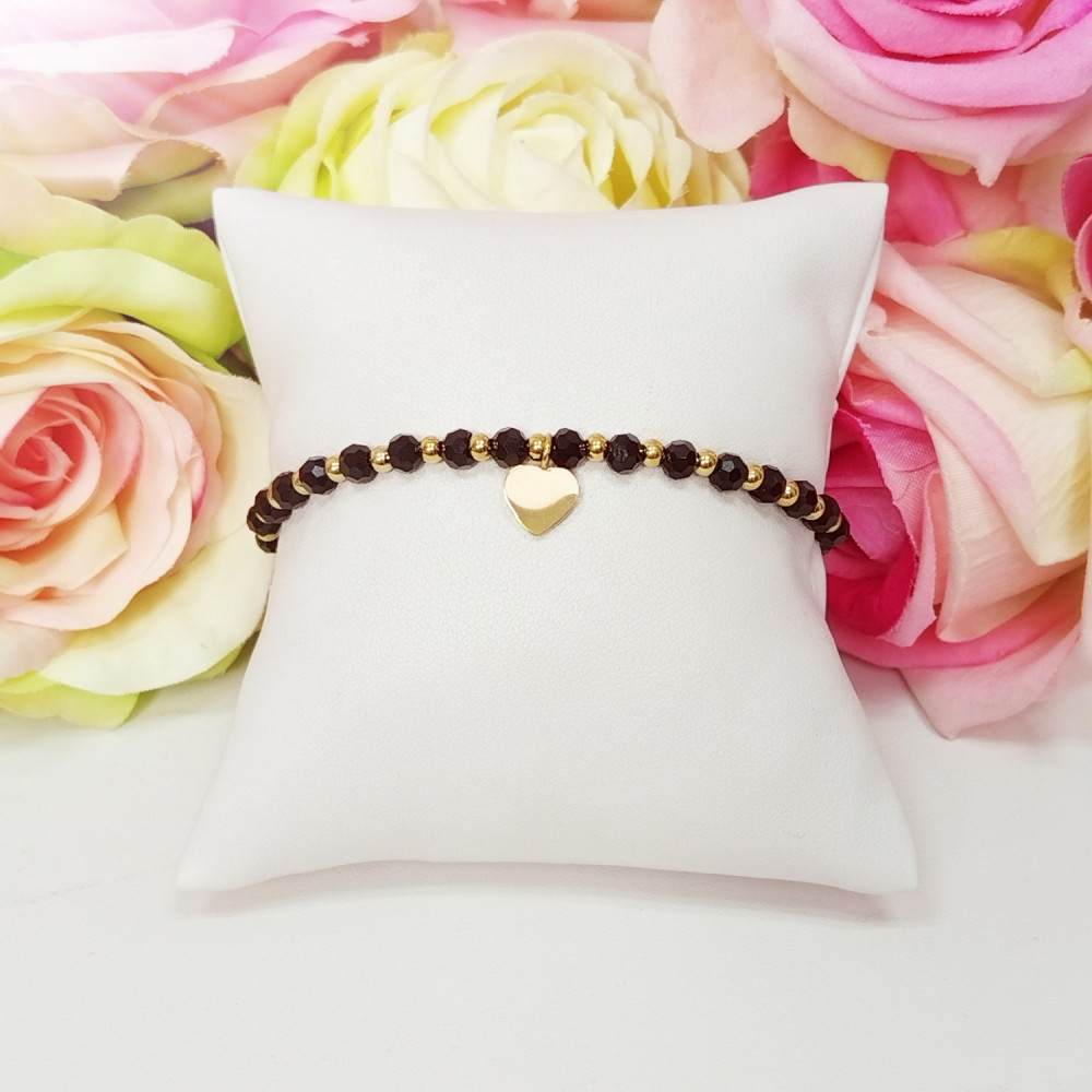 Bransoletka złota serce czarne koraliki elegancka stal chirurgiczna 316L