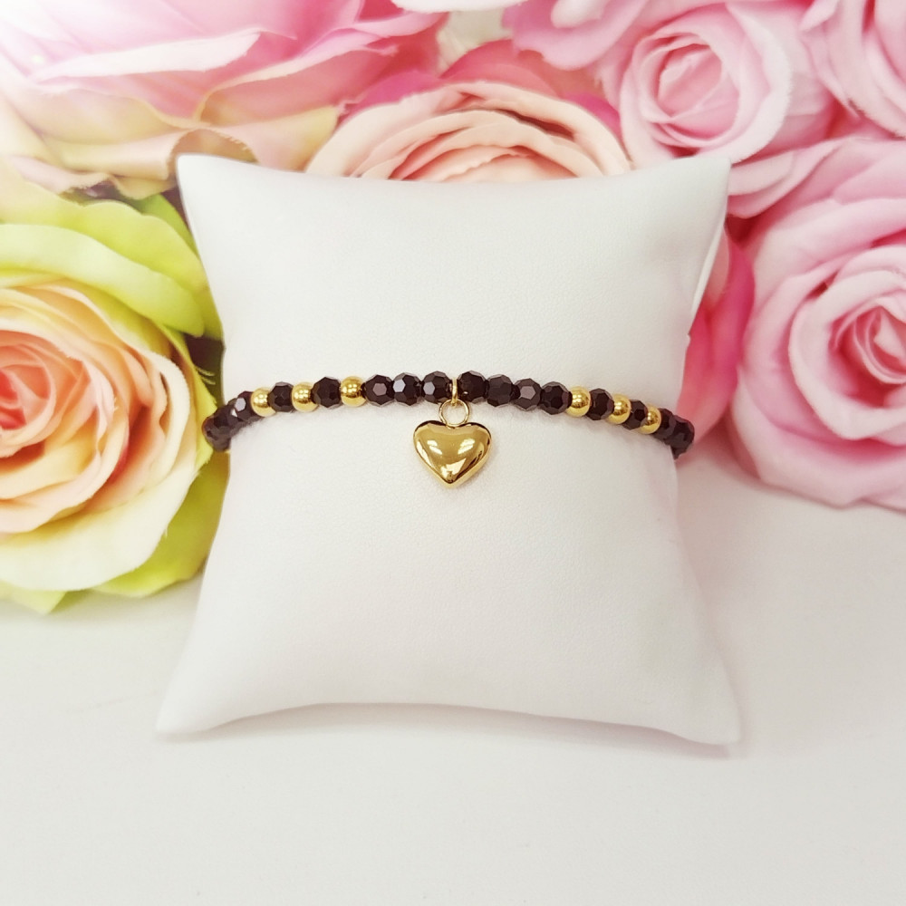 Bransoletka złota na gumce serce stal chirurgiczna 316L
