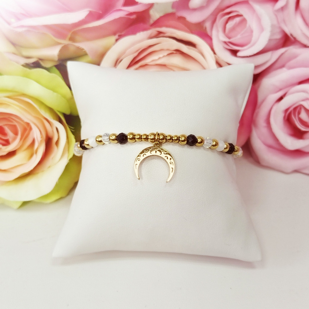 Bransoletka złota na gumce księżyc kamienie stal chirurgiczna 316L
