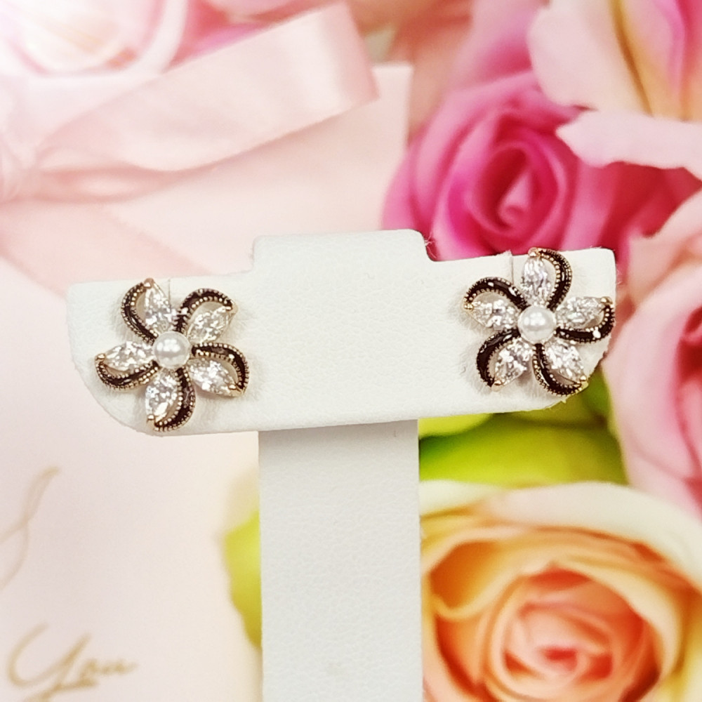 Kolczyki wkrętki pozłacane kwiaty perła stal chirurgiczna 316L