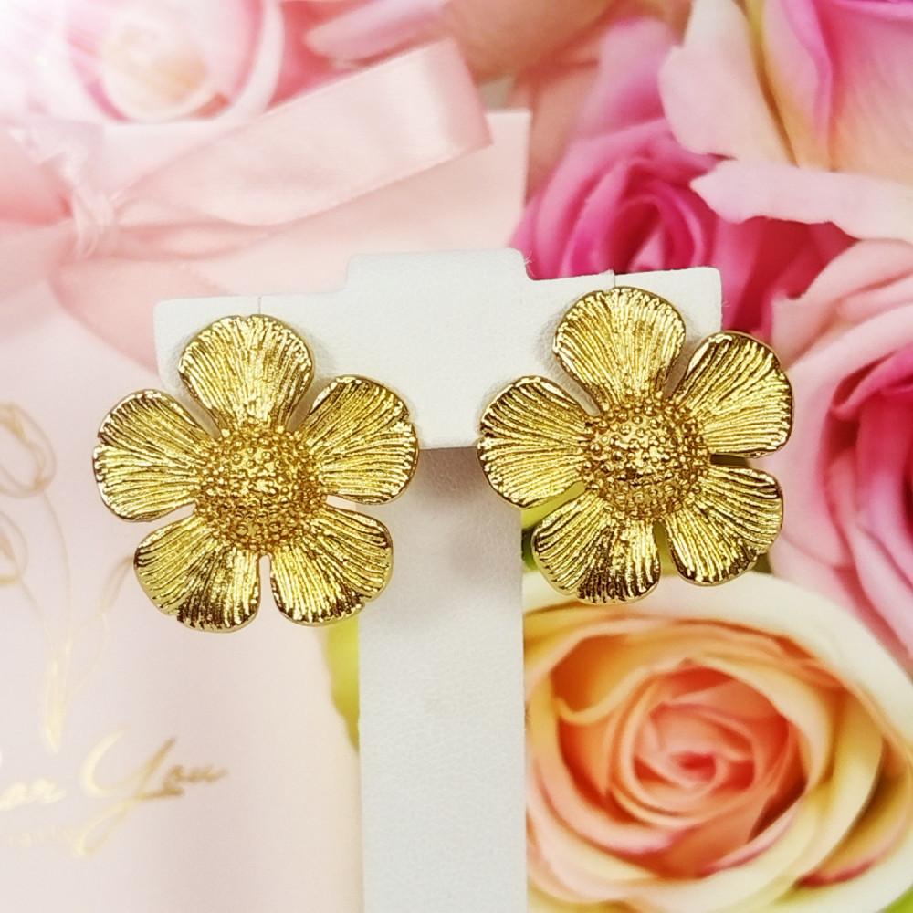 Kolczyki wkrętki pozłacane kwiaty stal chirurgiczna 316L